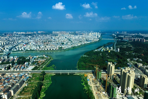 鳥瞰隨州城,道路寬敞,四通八達;城市樹木郁郁蔥蔥,處處綠意盎然;一座座高樓拔地而起,一座座橋梁橫跨河流。