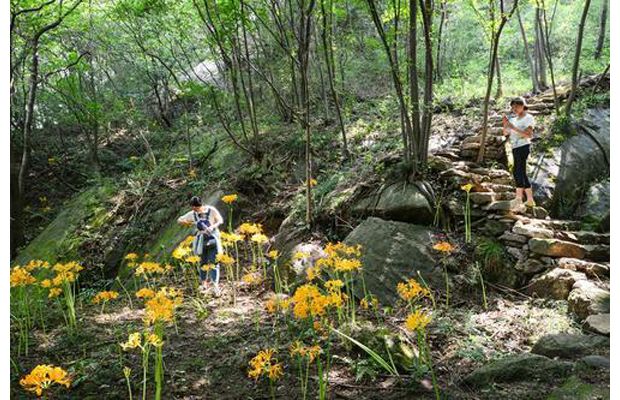 隨州網(wǎng)訊 8月12日,隨縣中藥材普查工作者在淮河鎮(zhèn)神農(nóng)部落發(fā)現(xiàn)大面積的野生黃花石蒜。我市境內(nèi)大洪山、三潭風景區(qū)等地都先后發(fā)現(xiàn)有野生石蒜分布,但如此大面積的野生石蒜群落實屬罕見。