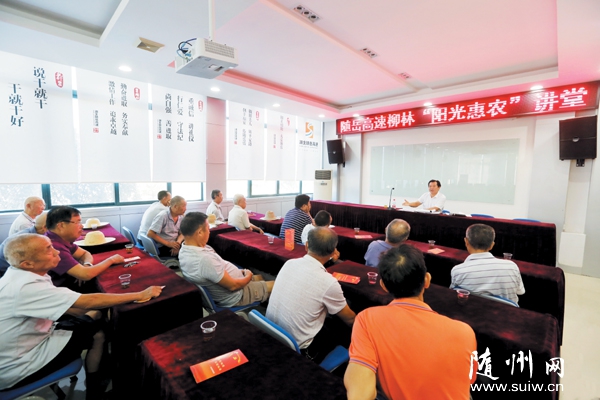 隨州網(wǎng)訊 隨岳高速公路管理處柳林管理所多年來踐行“陽光相隨、大愛如岳”的隨岳精神,與駐地隨縣柳林鎮(zhèn)團(tuán)結(jié)村結(jié)對(duì)共建,開展精準(zhǔn)扶貧、志愿者服務(wù)、關(guān)愛留守兒童等活動(dòng)。圖為8月27日,柳林管理所舉辦“陽光惠農(nóng)”講堂,宣講惠農(nóng)政策。(本報(bào)記者 徐 斌攝)