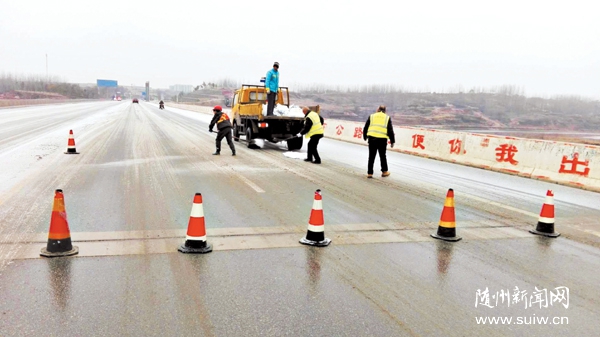 隨州新聞網(wǎng)訊 連日來,氣溫突降,道路結(jié)冰,給返程客流帶來不便和安全隱患。曾都公路局迅速行動,多措并舉,除冰雪、清路障,保障公路暢通和市民出行安全。(隨州日報(bào)全媒體記者唐天才、通訊員孫東攝)