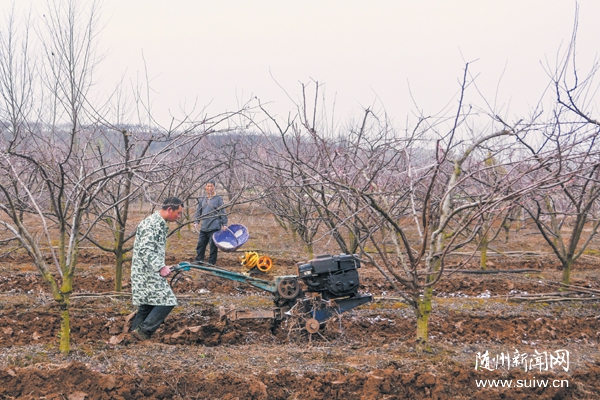 隨州新聞網(wǎng)訊 隨著天氣轉(zhuǎn)暖,我市各地?fù)屪マr(nóng)時(shí)春耕備耕。圖為2月24日隨縣唐縣鎮(zhèn)魯城河村果農(nóng)正在果園翻耕施肥,為果子豐收打好基礎(chǔ)。(隨州日?qǐng)?bào)全媒體記者 李文軍攝)