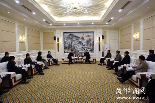 陳瑞峰對(duì)涂山峰一行的到來表示歡迎,并介紹了隨州經(jīng)濟(jì)社會(huì)發(fā)展情況。他說,省委省政府提出“一芯驅(qū)動(dòng)、兩帶支撐、三區(qū)協(xié)同”區(qū)域和產(chǎn)業(yè)戰(zhàn)略布局,把隨州納入漢孝隨襄十制造業(yè)高質(zhì)量發(fā)展帶、鄂西綠色發(fā)展示范區(qū),進(jìn)一步強(qiáng)化了隨州在全省發(fā)展的戰(zhàn)略定位,賦予了隨州新的歷史使命。對(duì)接全省戰(zhàn)略布局,隨州正著力打造產(chǎn)業(yè)新城、文旅名城、生態(tài)綠城,建設(shè)品質(zhì)隨州,推動(dòng)高質(zhì)量發(fā)展,特別是依托專汽產(chǎn)業(yè)優(yōu)勢(shì)打造應(yīng)急產(chǎn)業(yè)基地,依托風(fēng)機(jī)產(chǎn)業(yè)優(yōu)勢(shì)打造地鐵裝備產(chǎn)業(yè)基地,依托香菇品牌優(yōu)勢(shì)打造香菇產(chǎn)業(yè)基地,依托曾隨文化資源打造編鐘文化產(chǎn)業(yè)基地,這必將進(jìn)一步彰顯產(chǎn)業(yè)特色、延長(zhǎng)產(chǎn)業(yè)鏈條,促進(jìn)產(chǎn)業(yè)做大做強(qiáng),推動(dòng)我市在創(chuàng)建經(jīng)濟(jì)轉(zhuǎn)型升級(jí)和創(chuàng)新驅(qū)動(dòng)示范城市中上水平上臺(tái)階。他強(qiáng)調(diào),當(dāng)前,隨州面臨產(chǎn)業(yè)發(fā)展的雙重壓力,既要解決“有沒有”的問題,又要解決“好不好”的問題。隨州要把招商引資作為一號(hào)工程,堅(jiān)持招商與安商雙輪驅(qū)動(dòng),全力以赴支持港航集團(tuán)來隨投資興業(yè),我們將全力做好服務(wù),爭(zhēng)取更多項(xiàng)目落地,實(shí)現(xiàn)互利雙贏。