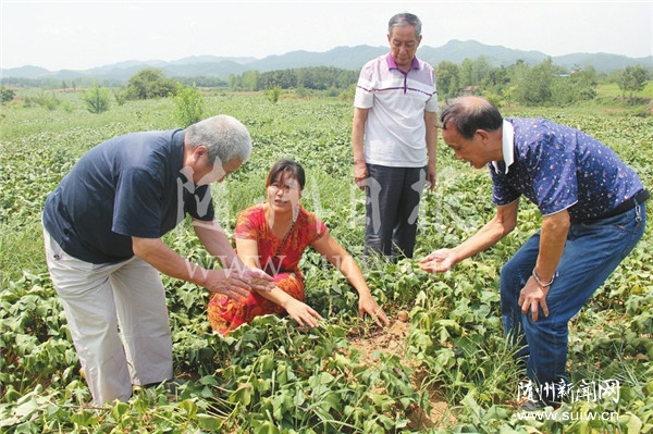 隨州日報訊  8月11日,隨縣正華種養(yǎng)殖專業(yè)合作社,組織技術(shù)人員,到百畝優(yōu)質(zhì)紅薯地就旱情進行會診,研究抗旱對策。(隨州日報通訊員 多思攝)