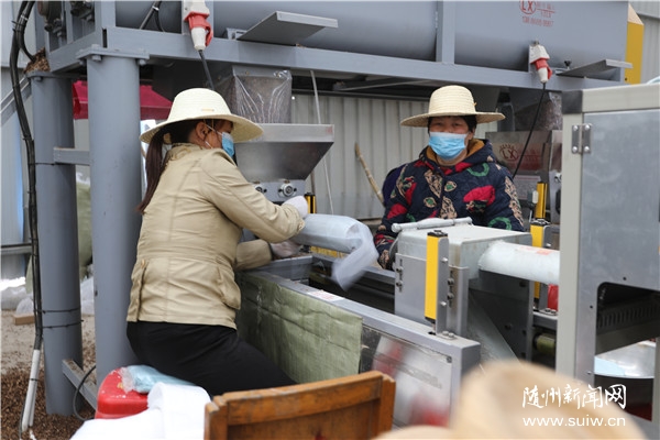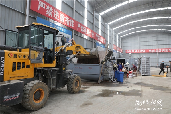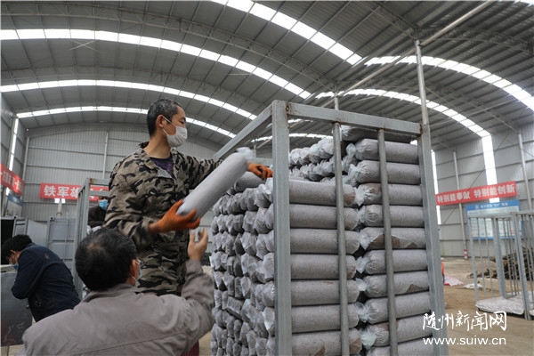 3月18日,曾都區(qū)府河鎮(zhèn)四五咀村香菇扶貧共創(chuàng)基地車間內(nèi),伴隨著機(jī)器機(jī)器運(yùn)轉(zhuǎn),一袋袋菌棒從機(jī)器出口滑落下來(lái)。