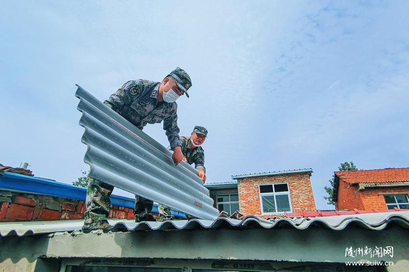 隨州陸軍預(yù)備役工兵團(tuán)官兵 為貧困戶龔加連家補(bǔ)蓋石棉瓦