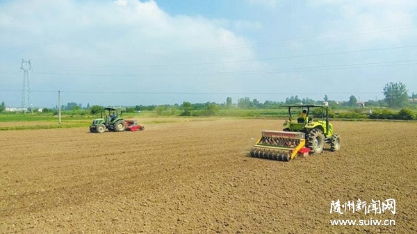 6月4日,市農(nóng)業(yè)農(nóng)村局在廣水市陳巷鎮(zhèn)召開全市抗災(zāi)夏播現(xiàn)場會,圖為水稻旱直播操作示范。(隨州日報全媒記者張清攝)