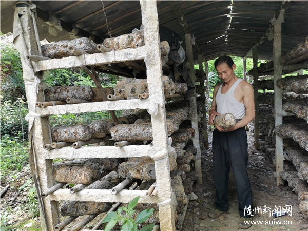 在一處田壟上,村里的貧困戶楊自發(fā)正在查看他家栽種的藥材七葉一枝花,苗圃旁邊還有他自建的香菇種植大棚,架子上整齊地擺放著一排排菌棒。楊自發(fā)介紹:“那邊房屋周圍一片高大粗壯的楊樹,都是我栽種的。今年我家種了幾畝口糧田,院里還養(yǎng)殖了黑豬和10箱子蜜蜂……里里外外都得忙活。”