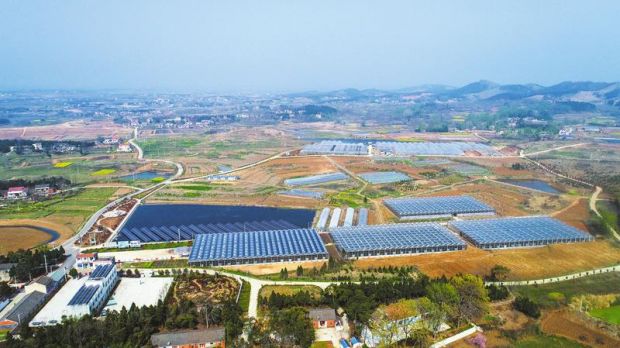 廣水市長嶺鎮(zhèn)泉水村光伏發(fā)電、多肉基地和養(yǎng)蝦基地。(隨州日報全媒記者李文軍攝)