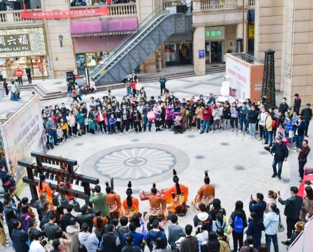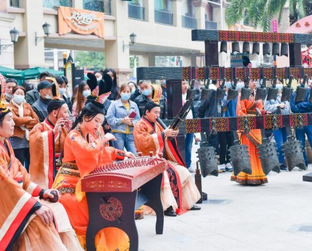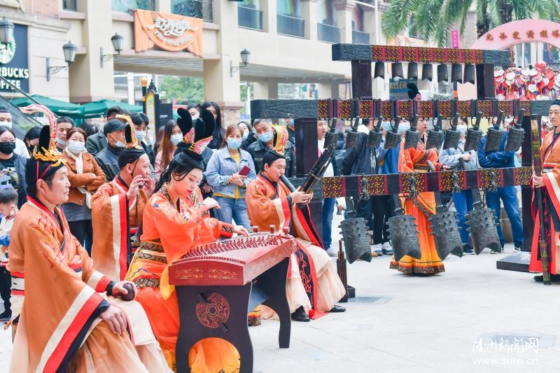 隨州日報訊 (全媒記者 陳云)繁華鬧市編鐘敲響,人群身旁水袖飛揚(yáng)。10月17日,我市組織赴漢開展“惠游湖北 樂動江城”編鐘樂舞快閃巡演。古老神秘的編鐘樂舞走進(jìn)繁華鬧市、市民身邊,古典與現(xiàn)代的碰撞之美,讓現(xiàn)場圍觀群眾深深記住了隨州,進(jìn)一步提升了隨州城市的知名度和美譽(yù)度。