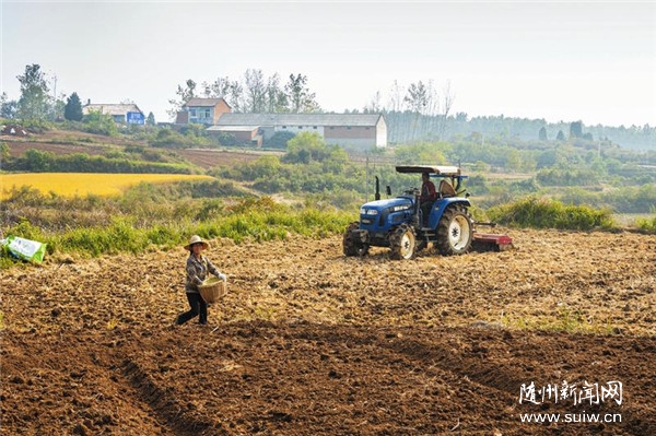 10月30日,隨縣新街鎮(zhèn)墩子灣村楊國洲夫婦正在播種小麥。該鎮(zhèn)今年計(jì)劃播種6.5萬畝小麥,目前已完成4.3萬畝。進(jìn)入10月下旬,農(nóng)民搶抓有利季節(jié),積極進(jìn)行秋冬播生產(chǎn),田間地頭一派繁忙景象。(隨州日?qǐng)?bào)全媒記者李文軍攝)