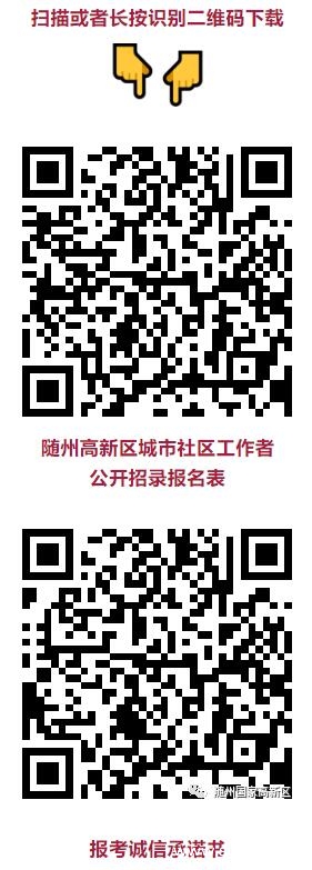 3、報(bào)名辦法:報(bào)考人員在報(bào)名時(shí)間內(nèi),持《隨州高新區(qū)城市社區(qū)工作者公開招錄報(bào)名表》(可登錄隨州高新技術(shù)產(chǎn)業(yè)開發(fā)區(qū)管理委員會官方網(wǎng)站、“隨州國家高新區(qū)”微信公眾號下載或現(xiàn)場領(lǐng)。、身份證、戶口薄、畢業(yè)證書、個(gè)人工作簡歷等相關(guān)證件原件及復(fù)印件,同底1寸免冠彩色照片3張,到指定的報(bào)名地點(diǎn)提交報(bào)名申請,簽署誠信承諾?筛綆宋樽C、社會工作者職業(yè)水平證書、學(xué)信網(wǎng)學(xué)歷認(rèn)證報(bào)告、獲獎證書等相關(guān)證件原件及復(fù)印件,不附帶視為放棄加分機(jī)會。報(bào)名與考試時(shí)使用的身份證必須一致。