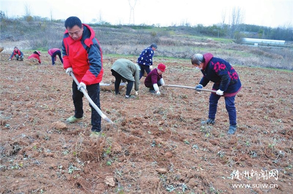 12月14日,市艾草產(chǎn)業(yè)協(xié)會組織專家組深入會員種艾基地,指導(dǎo)冬季艾草間苗、疏根、取苗、碎根、播種、施肥、開溝技術(shù)。圖為艾草專家在隨縣鵬誠艾草種植專業(yè)合作社帶領(lǐng)社員一起取苗。 (隨州日報通訊員石守京攝)