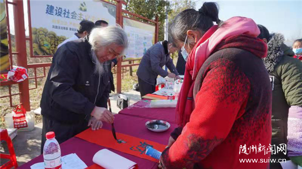 ▲書法家為隨縣新街鎮(zhèn)水寨村的父老鄉(xiāng)親書寫春聯(lián)