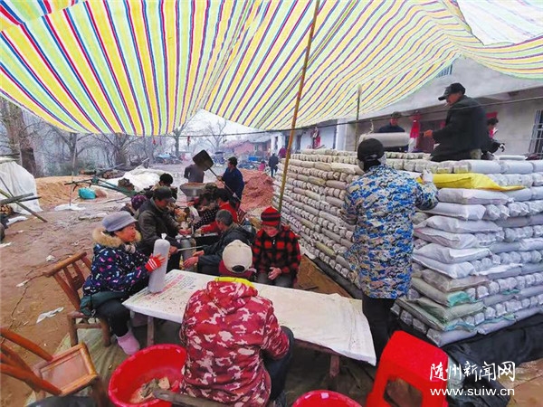1月25日,曾都區(qū)洛陽鎮(zhèn)胡家河村二組陳佰銀等十幾戶菇農自發(fā)成立的互助組,正在輪流幫助各戶裝填香菇袋料,為春菇栽種作準備。(隨州日報全媒記者李文軍攝)