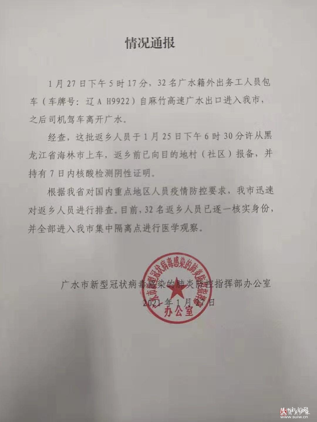 【權(quán)威發(fā)布】廣水疫情防控指揮部辦公室情況通報(bào)