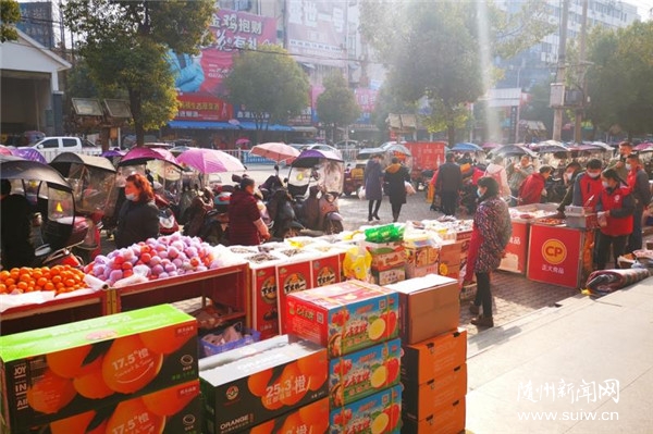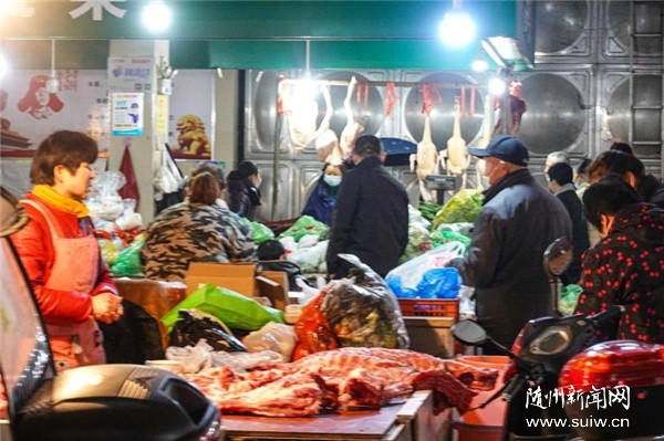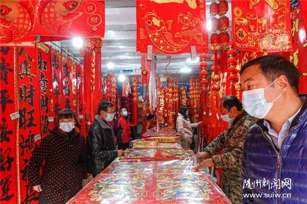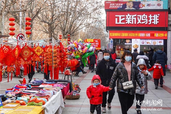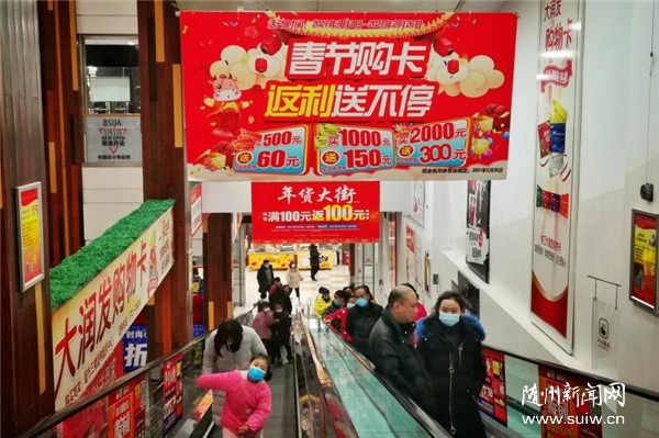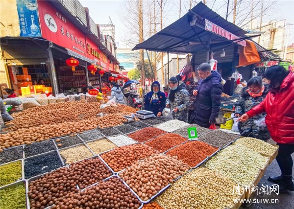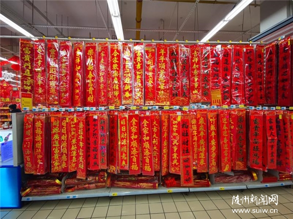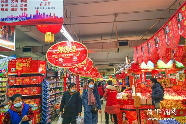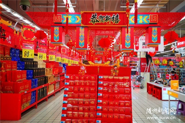 隨州城大型超市,一進(jìn)門就看到專門設(shè)置的年貨專區(qū),貨架上堆滿了各種商品,到處涌動(dòng)著購置年貨的人群。