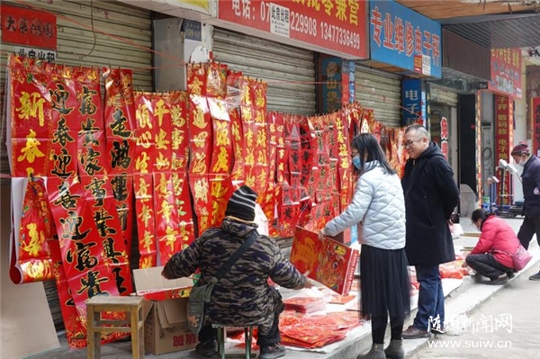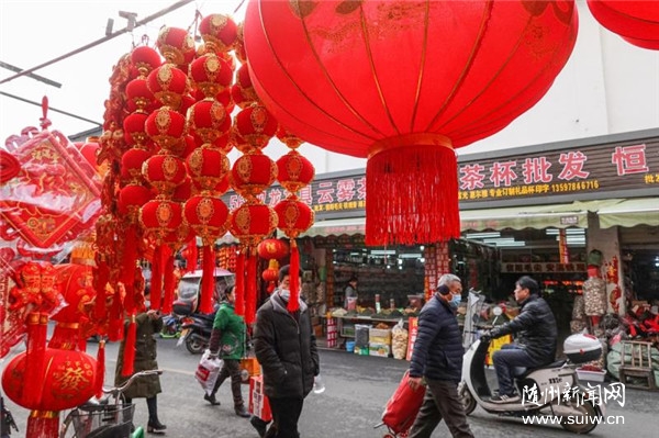 農(nóng)貿(mào)市場(chǎng)里,紅彤彤的燈籠、喜慶的春聯(lián)、中國(guó)結(jié)等傳統(tǒng)節(jié)日喜慶飾品開始熱銷。
