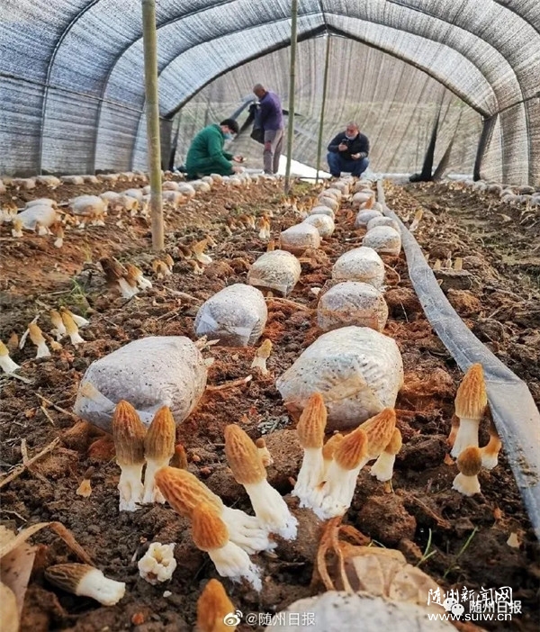 2月22日上午,隨縣草店鎮(zhèn)金鑼山村的羊肚菌種植基地,幾十位村民正在大棚里有序采收!敖衲暄蚨蔷搏@豐收,100畝基地收益能達(dá)到300萬元,入股的困難群眾最低人均增收萬元以上。”基地主要負(fù)責(zé)人劉輝說,“實(shí)踐證明,胡主任提出的‘五位一體’扶貧模式,帶貧效果明顯!