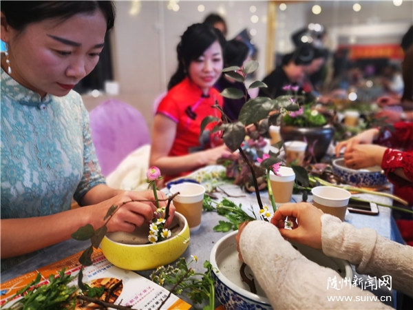 3日7日,樂蘊文化與樊登讀書聯(lián)合開展插花藝術(shù)體驗活動,以迎接“三八”女神節(jié)。在花藝布置專業(yè)老師為插花藝術(shù)愛好者現(xiàn)場講解指導(dǎo)下,“女神們"將普通的花草變成了一件件賞心悅目的藝術(shù)品。(隨州日報全媒記者李文軍攝)