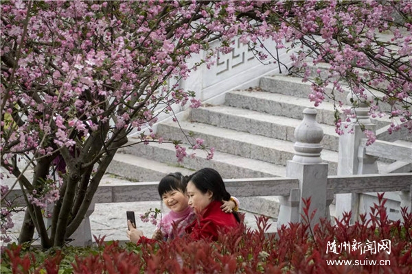 3月16日,市民在白云公園賞櫻花,感受春天氣息。近日,白云公園海棠、紫荊、紅葉碧桃、春梅等10多種花卉競相綻放,成為市民休閑娛樂的好去處。(隨州日報全媒記者李文軍攝)