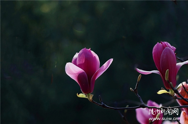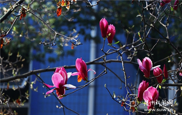 。ㄈ接浾唿S芳芳、通訊員周旋)“霓裳片片晚妝新,束素亭亭玉殿春。已向丹霞生淺暈,故將清露作芳?jí)m。”陽(yáng)春三月,湖北省隨州市城區(qū)的紅玉蘭花開(kāi)了,花瓣紅里透粉,香氣淡雅柔和,清新宜人,給人們帶來(lái)春天的氣息和問(wèn)候。