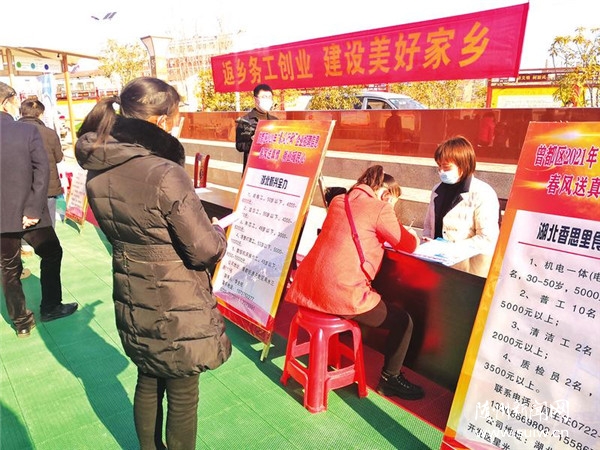 近日,曾都區(qū)萬店鎮(zhèn)舉辦“春風送真情、就業(yè)暖民心”專場招聘會,共有21家企業(yè)參與招聘,提供1000余個崗位,應(yīng)聘人員達300余人。(隨州日報通訊員楊代飛攝)