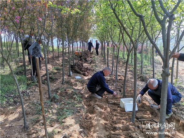 4月19日,走進隨縣草店鎮(zhèn)金鑼山村苗木基地,村民們正在挖坑、播種、蓋土,在林間空地上種植天麻,忙得不亦樂乎。
