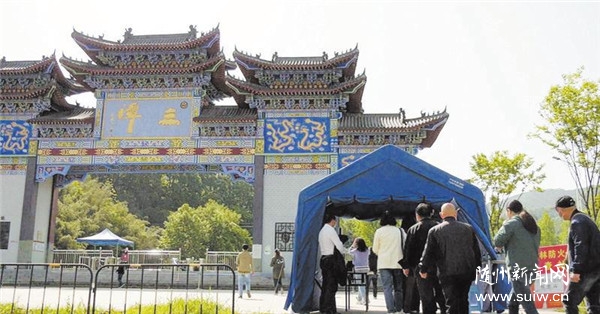 4月28日,經(jīng)整修后,三潭風(fēng)景區(qū)重新開園,迎來首批游客。圖為游客們佩戴口罩、檢測體溫后有序進(jìn)入景區(qū)。(隨州日報(bào)特約記者程淇、通訊員盧佳攝)