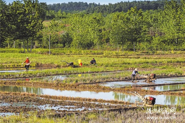 連日來,全市各地農(nóng)戶加緊進行整田、施底肥工作,為插秧做好準(zhǔn)備。田間地頭,隨處可見農(nóng)戶翻地、灌水和育秧忙碌的身影。圖為隨縣安居鎮(zhèn)王家樓村農(nóng)民正在整田。 (隨州日報全媒記者李文軍攝)