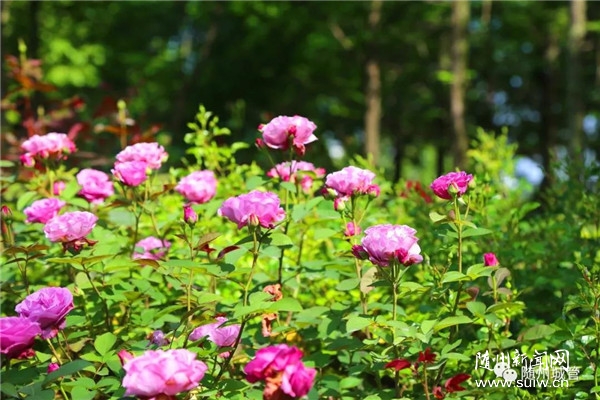 “玫瑰花!笔前自坪h(huán)境園林景觀提升工程項(xiàng)目“濱水八景”之一。為打造玫瑰主題公園,園區(qū)種植了160個(gè)品種近12萬株玫瑰,配套建設(shè)了玫瑰花廊、茶廊、大隋文化墻等園林小品。