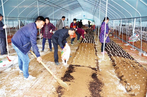市食用菌協(xié)會與湖北寶蕈農(nóng)業(yè)科技有限公司投資500萬元建設(shè)冬蓀新模式栽培試驗(yàn)示范合作項(xiàng)目。圖為5月17日食用菌技術(shù)人員現(xiàn)場指導(dǎo)幫冬蓀安家,確保試驗(yàn)成功。(隨州日報(bào)通訊員石守京攝)