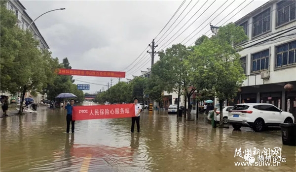 在洛陽鎮(zhèn),人保財(cái)險曾都支公司設(shè)立了“人民保險”心服務(wù)站,接受報案協(xié)助當(dāng)?shù)卣畵岆U救災(zāi)。