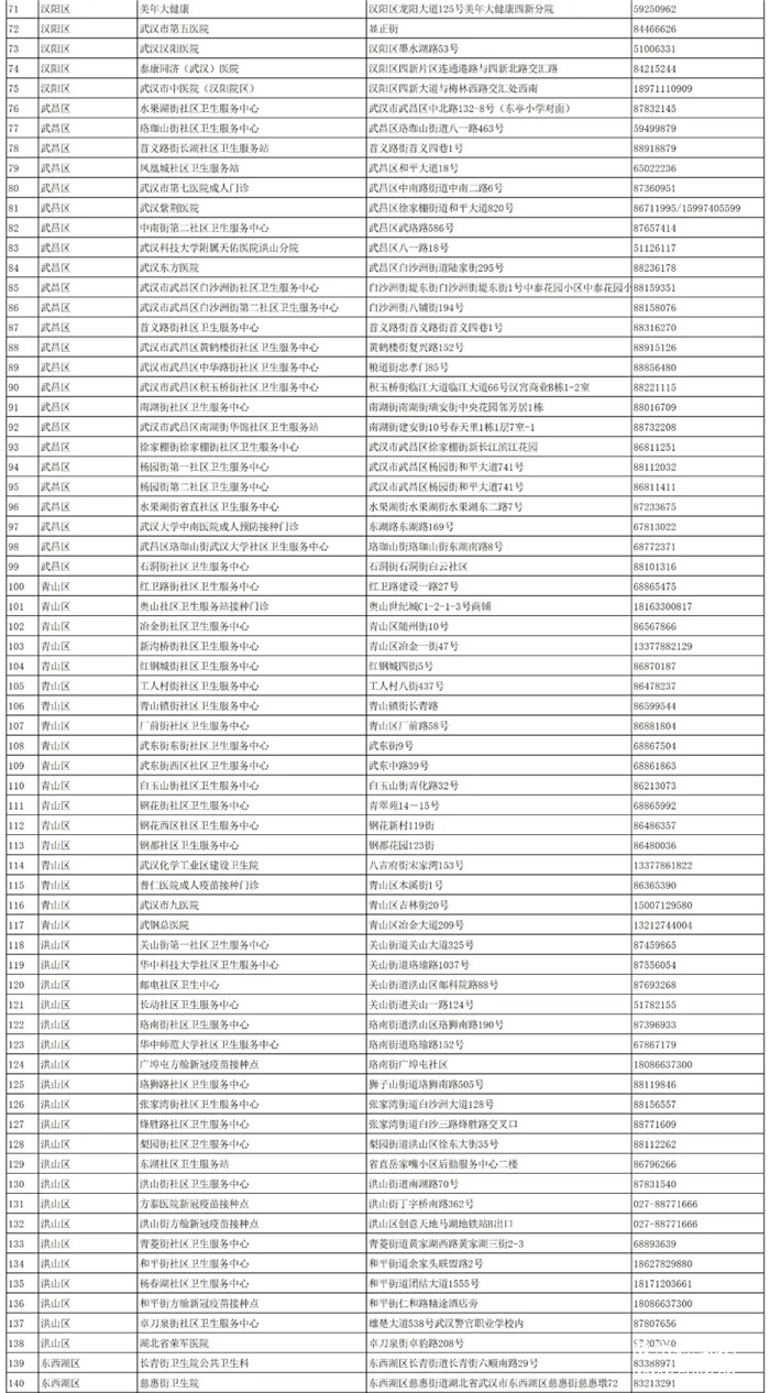 湖北省新冠疫苗接種門診(點(diǎn))一覽表