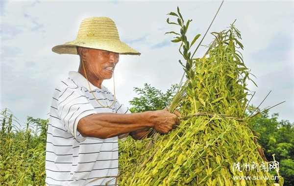 隨縣厲山鎮(zhèn)神農(nóng)社區(qū)小農(nóng)場(chǎng)崗地黃豆、紅苕、芝麻等旱秋作物長(zhǎng)勢(shì)良好喜獲豐收。圖為該鎮(zhèn)農(nóng)民趁晴下地收割芝麻。(隨州日?qǐng)?bào)全媒記者孫洪濤、通訊員葵琳、老木攝)