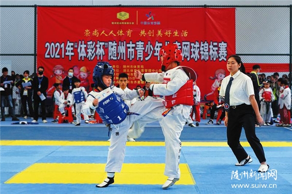 10月7日,湖北省首屆社區(qū)運(yùn)動(dòng)會(huì)隨州賽區(qū)少兒跆拳道比賽在隨州齊星健身村舉行。圖為神農(nóng)社區(qū)和吳家老灣社區(qū)代表隊(duì)選手正在進(jìn)行比賽。(隨州日報(bào)全媒記者李文軍攝)