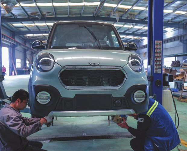 圖為易安達(dá)新銳純電微型轎車總裝生產(chǎn)線一角。