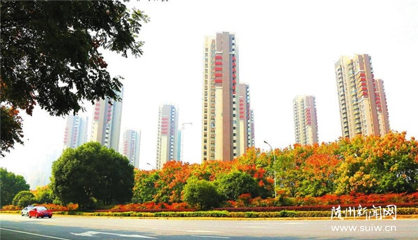時(shí)值深秋,隨州城區(qū)層林盡染,秋色滿目,各種樹(shù)木炫色斗艷,將隨城裝扮得美麗如畫(huà)。圖為迎賓大道沿途景觀。(隨州日?qǐng)?bào)通訊員 聶少峰攝)