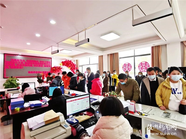 2022年2月22日被網(wǎng)友稱為“有愛的日子”,許多新人選擇在這一天登記結(jié)婚。隨縣婚姻登記處以此為契機,精心打造溫馨宣誓大廳,開展文明婚俗改革宣傳。 (隨州日報全媒記者包東流、通訊員熊小瓊攝)