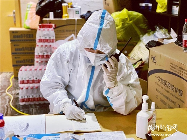 來(lái)自市中心醫(yī)院的劉召、金文文、隨縣馳援護(hù)士何先華、何云艷組成“一醫(yī)三護(hù)”醫(yī)護(hù)組,他們帶著光榮的使命與責(zé)任,不懼任何困難,每天與隔離人員接觸數(shù)十次,穿著密不透風(fēng)的防護(hù)服,每天凌晨3點(diǎn)就開始做核酸檢測(cè)、檢查隔離人員身體情況,衣服濕了干、干了濕。4月6日下午,醫(yī)護(hù)人員接到3001房求助信息,她家小孩不小心把頭磕破,急需幫助,醫(yī)護(hù)人員第一時(shí)間穿戴好防護(hù)服,沖進(jìn)隔離區(qū)檢查情況,由于防護(hù)罩起霧視線差,一度無(wú)法看清傷口具體深度,初步診斷需要縫針,因缺乏相關(guān)工具,在把情況匯報(bào)給負(fù)責(zé)人后,緊急協(xié)調(diào)聯(lián)系救護(hù)車,送往醫(yī)院救治,在傳來(lái)一切平安的消息后,所有工作人員懸著的心終于落地,忙完一切后已是第二天凌晨2點(diǎn)半了,諸如此類的情況還有許多。隔離點(diǎn)里有老人及兒童等特殊群體,醫(yī)護(hù)人員深知必須用更加嚴(yán)謹(jǐn)?shù)膽B(tài)度、更加專業(yè)的工作方式,去對(duì)待日常工作中每一處細(xì)節(jié),既要做好醫(yī)護(hù)人員的本職工作,解除隔離群眾身體和心理上的不適,更要當(dāng)好他們生活上的“貼心管家”,他們不顧個(gè)人安危,舍小家、顧大家,不畏困難和風(fēng)險(xiǎn),夜以繼日戰(zhàn)斗在疫情防控第一線,成為隔離點(diǎn)一道最靚麗的風(fēng)景線。