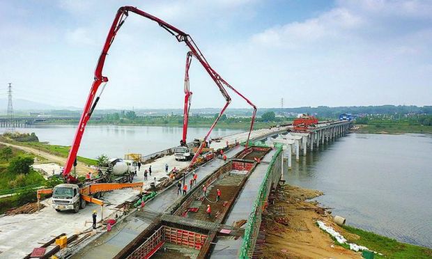 4月29日,316國(guó)道隨州市十崗至任家臺(tái)段(南外環(huán))主體工程之一的府河大橋正在進(jìn)行橋面現(xiàn)澆梁澆注施工。該橋全長(zhǎng)847米,橋面寬25.5米,由中建三局集團(tuán)建設(shè)施工,計(jì)劃今年8月全面貫通。