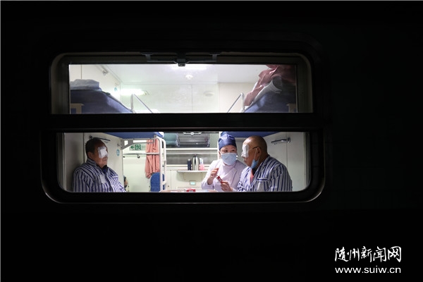 “健康快車”由手術(shù)車、病房車、發(fā)電餐飲車、宿營(yíng)車4節(jié)車廂編掛組成。手術(shù)車廂內(nèi)可以同時(shí)進(jìn)行2臺(tái)手術(shù)。手術(shù)之前,患者先在健康快車合作醫(yī)院廣水二醫(yī)院接受嚴(yán)格的篩查,對(duì)患者眼壓和視力進(jìn)行測(cè)試,符合手術(shù)指征的患者會(huì)被統(tǒng)一送到健康快車進(jìn)行免費(fèi)白內(nèi)障手術(shù)。
