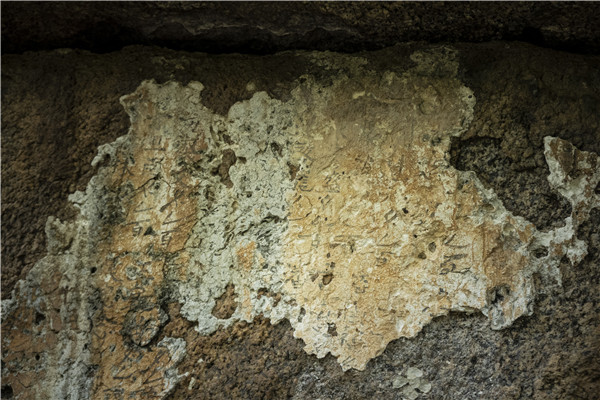 巖畫刻在一條名叫黃龍廟溝的山谷東側(cè)一塊巨大的花崗巖巖石上,巖畫是在石壁上鑿刻而成,形狀是一條魚,線條簡潔流暢,寥寥幾劃,形象逼真,栩栩如生。鑿刻巖畫的花崗巖上方橫壓著另一塊方形巨石,凸出部分正好如房檐一樣對下面的巖畫起到遮風(fēng)擋雨的作用,減少了對巖畫的風(fēng)蝕作用。在這幅巖畫旁邊還有石灰狀的白色涂層,經(jīng)過歲月的侵蝕,大部分已經(jīng)剝落,殘存的一些不知年代的字跡隱約可見。