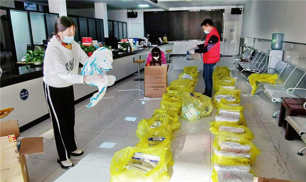 10月19日,志愿者在曾都區(qū)涢水街道風(fēng)光社區(qū)為小區(qū)15個核酸檢測點(diǎn)分配試劑、防護(hù)服、消毒劑等核酸檢測物資。 (隨州日報全媒記者李文軍攝)