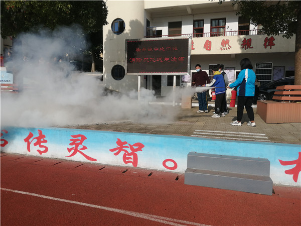 之后,由政教處現(xiàn)場師范講解干粉滅火器的正確使用方法,并現(xiàn)場抽學生上臺演練,使同學們對救火設備有了充分的了解和認識。