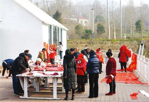 1月11日,曾都區(qū)文聯(lián)組織紅色文藝輕騎兵分隊走進洛陽鎮(zhèn),開展“宣傳貫徹二十大,文化惠民進萬家”活動。曾都區(qū)書法家協(xié)會的書法家們?yōu)楫數(shù)厝罕娒赓M寫春聯(lián)100余副;曾都區(qū)攝影家協(xié)會的攝影家們走進農家,為群眾拍攝全家福20余幅。 (隨州日報全媒記者 徐斌攝)