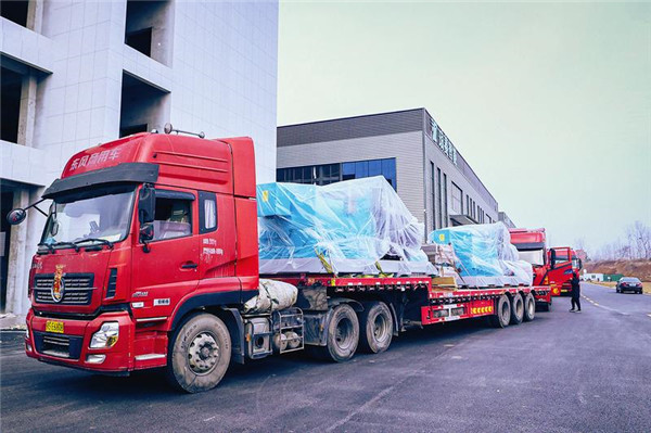 2月9日,瑯菱智能有限公司8輛裝載砂磨機(jī)的大卡車啟程。這8臺砂磨機(jī)是四川省內(nèi)江市一家鋰電池原材料生產(chǎn)廠家訂購的,每臺價(jià)值100多萬元。