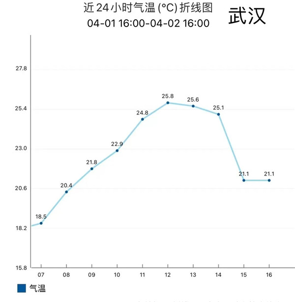 武漢14-15時一小時氣溫狂降4℃