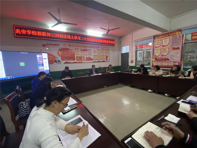 抓住關(guān)鍵點(diǎn),推進(jìn)師資共享,教學(xué)融合。炎帝學(xué)校主校區(qū)與三河校區(qū)之間實(shí)行教師輪崗,交流成長(zhǎng)。為保障三河校區(qū)正常教學(xué),教師無(wú)法在工作時(shí)間到主校區(qū)參加“相約星期五”活動(dòng),但距離阻止不了老師們的學(xué)習(xí)熱情,辦法總比困難多,我們采取了線上教研方式,參與到集體備課與“四備三思”研討中,共案教學(xué),同步教學(xué),共學(xué)習(xí),同進(jìn)步。