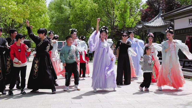 炎帝故里景區(qū)漢服快閃活動(dòng)吸引眾多游客。(隨州日?qǐng)?bào)全媒記者李文軍,通訊員唐廣益、劉星宇攝)