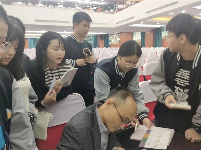 講座雖然已經(jīng)結(jié)束,但同學(xué)們的熱情并未消退,他們興致勃勃地繼續(xù)向蘇德超教授請教相關(guān)問題,蘇德超教授也耐心一一解答,人群中時(shí)不時(shí)傳來一陣陣歡聲笑語,有的同學(xué)還為了紀(jì)念這次精彩的講座請兩位教授簽名。同學(xué)們紛紛表示,原來哲學(xué)并非晦澀難懂、遙不可及,原來就在我們的學(xué)習(xí)、生活之中,也可以是妙趣橫生的。同學(xué)們真正體會到了哲學(xué)的魅力,感受到了哲學(xué)“無用”之“大用”。
